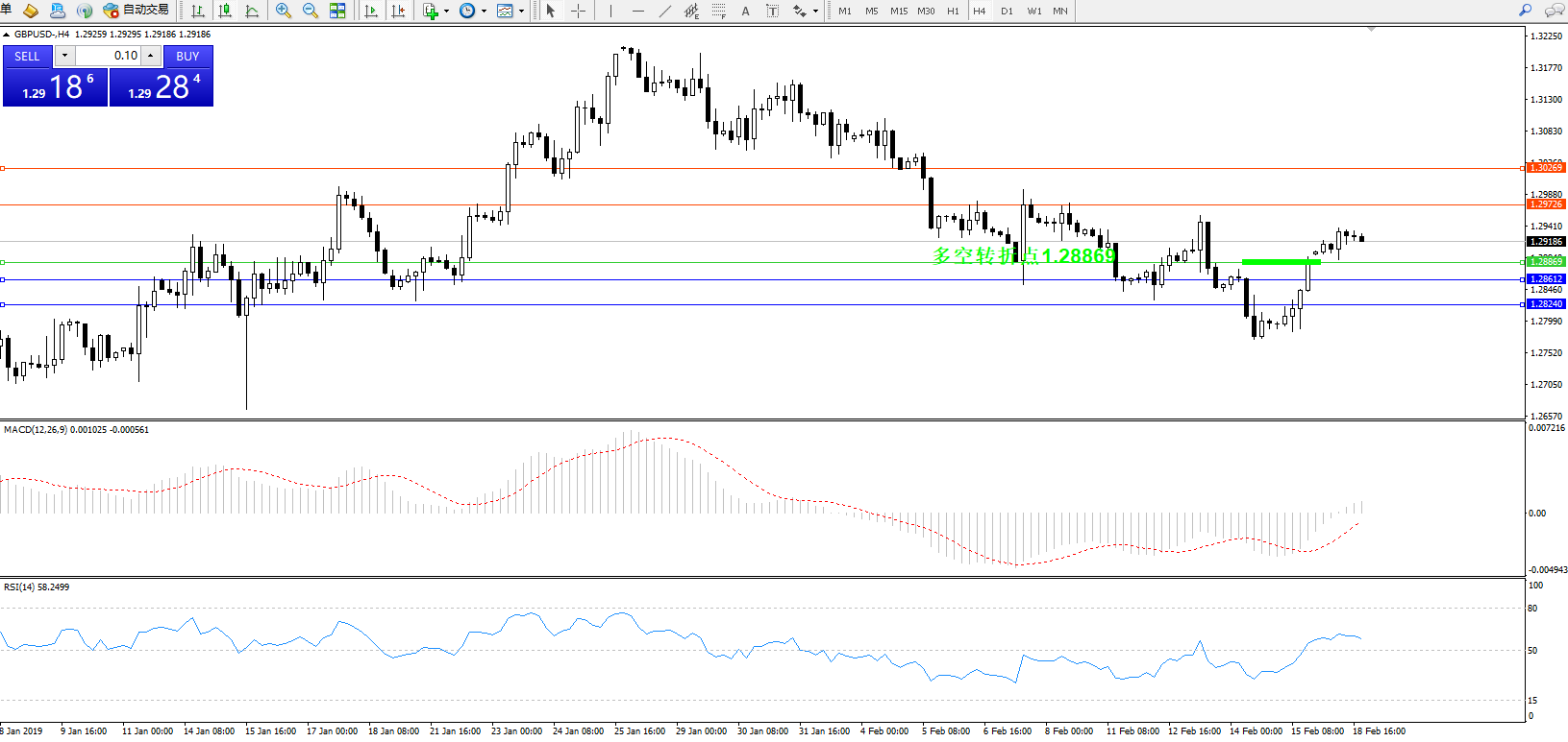 交易策略:1.28869上方看涨,目标1.29726、1.30269