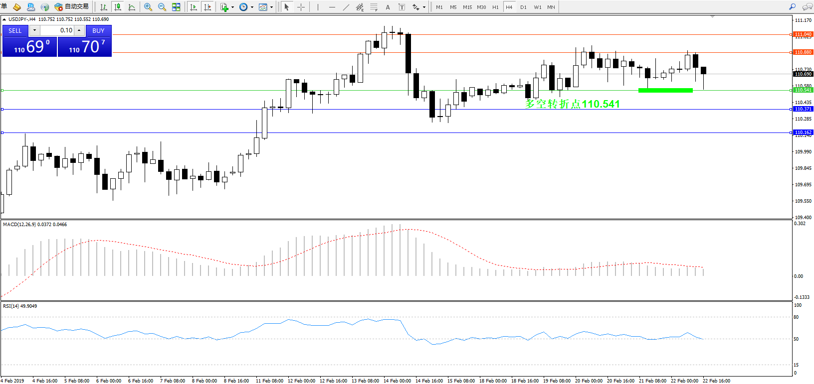 交易策略:110.541上方看涨,目标110.880、111.040