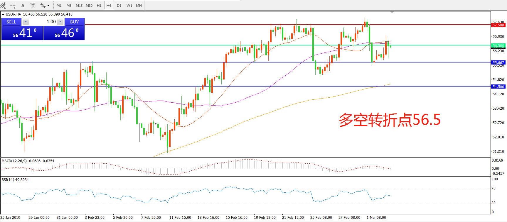 交易策略:在56.50之下看跌,目标55.50 54.50