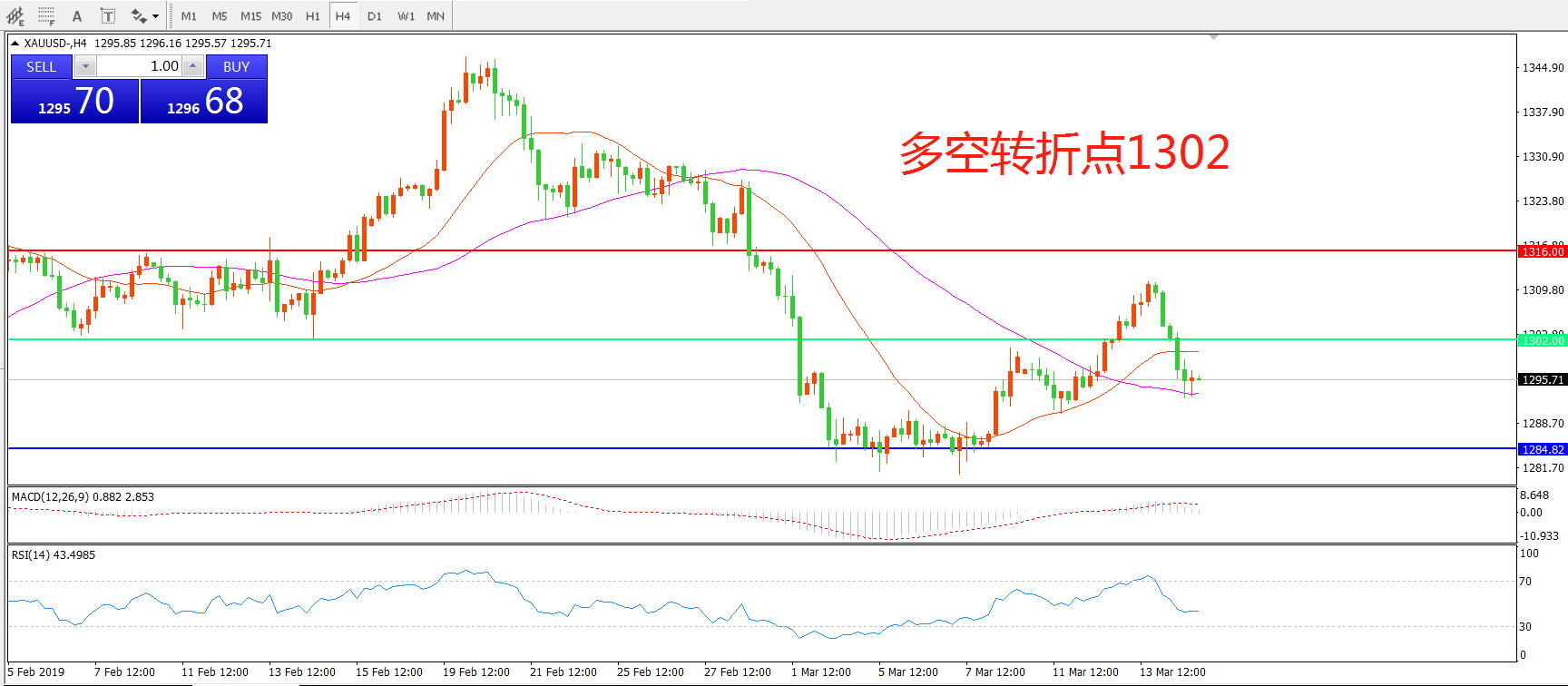 3月14日周四,因英国议员投票反对无协议退欧后,美元小幅走高,而欧洲股市上涨进一步削弱了黄金的吸引力。在美元反攻之际,现货黄金遭遇大幅抛售,最低触及1292.50美元/盎司,跌幅超过15美元。金价自去年8月触及逾一年半低点以来已上涨约13%,近期受美联储对货币政策的耐心立场以及对全球经济放缓的担忧加剧出现回落。最终黄金价格收跌1.1%,报1295.10美元/盎司。