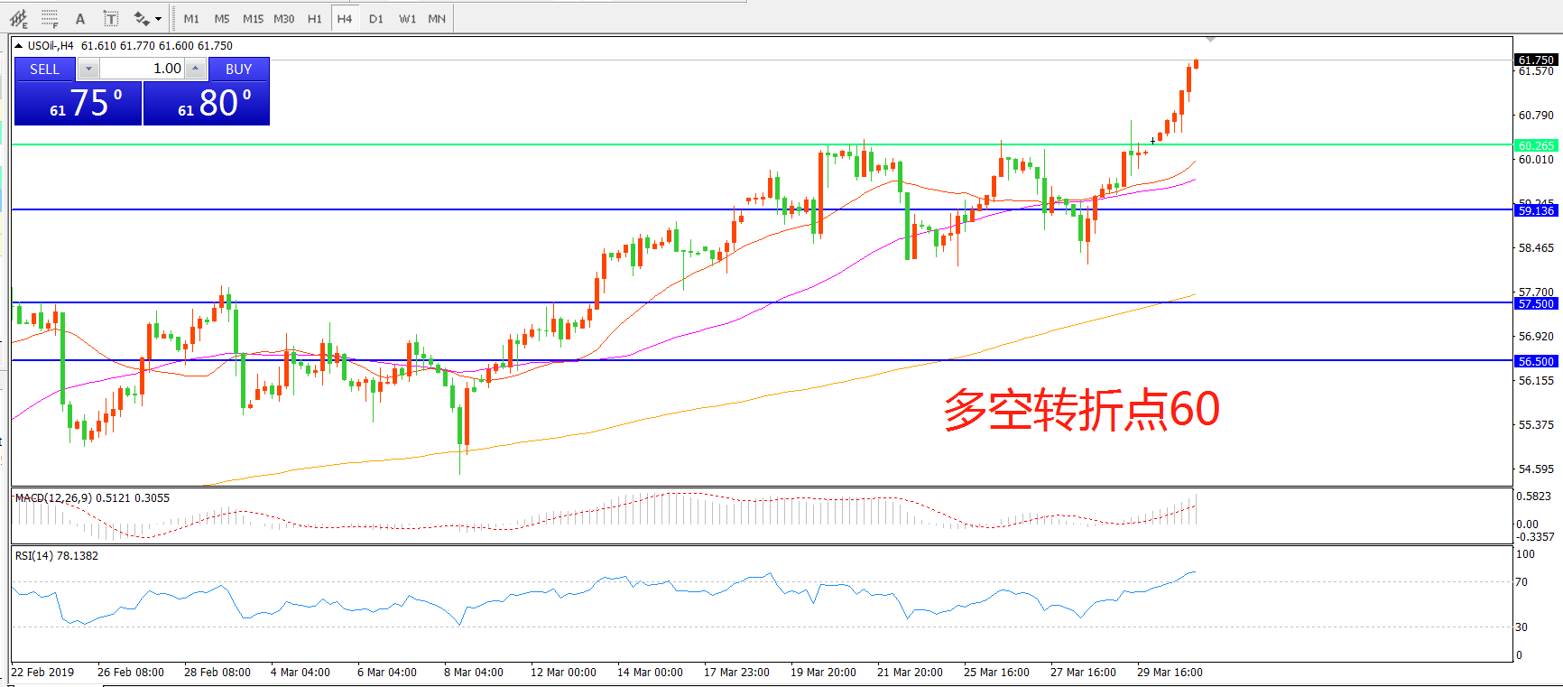 多空转折点:60.00