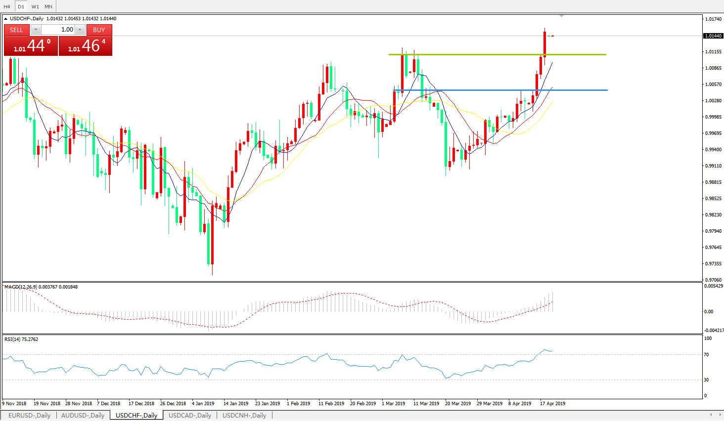美元瑞郎USDCHF   日线图: