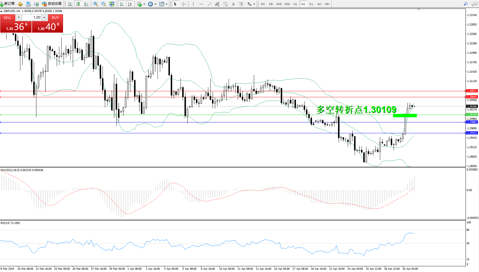 交易策略:1.30109上方看涨,目标1.30644、1.30831