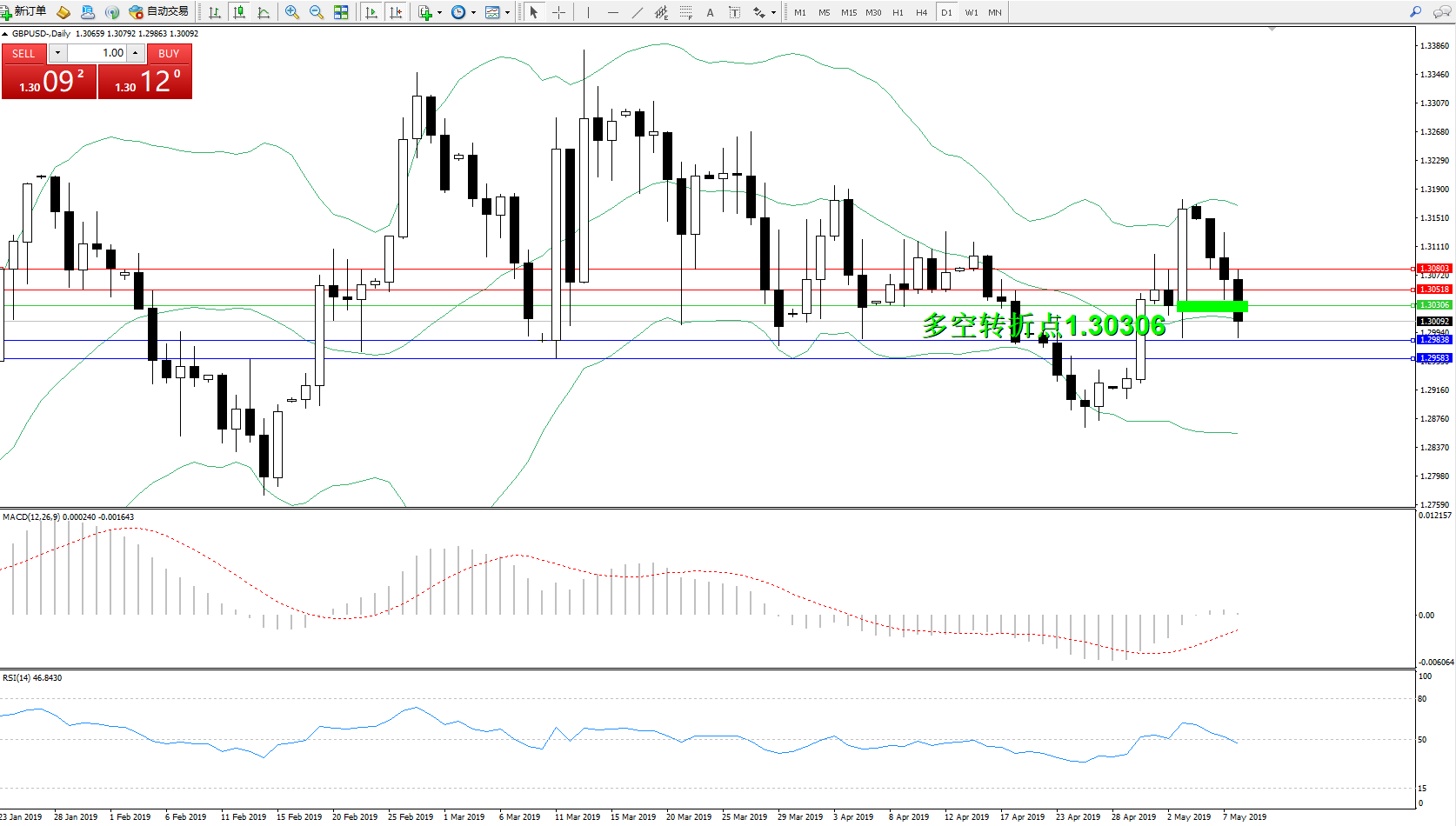 备选策略:1.30306上方看涨,目标1.30518、1.30803