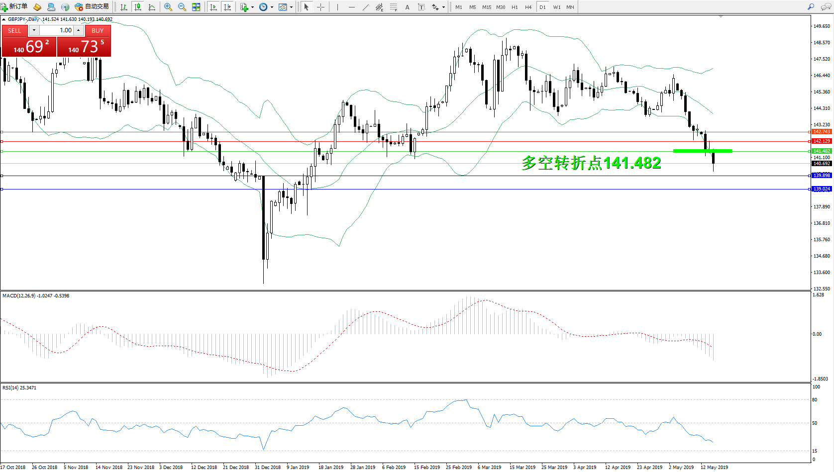 交易策略:141.482下方看跌,目标139.898139.024