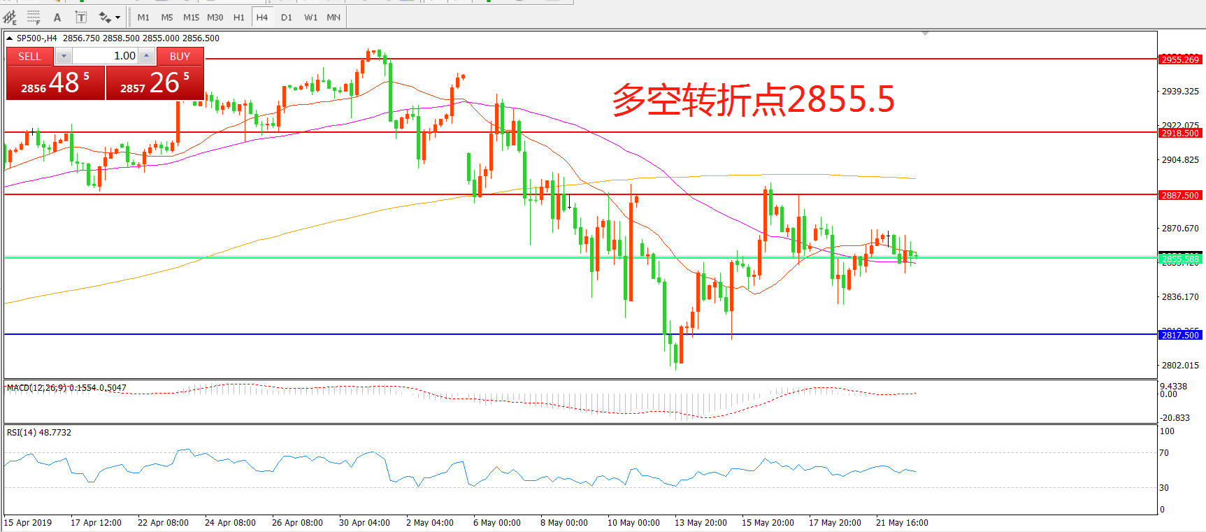 多空转折点:2855.50