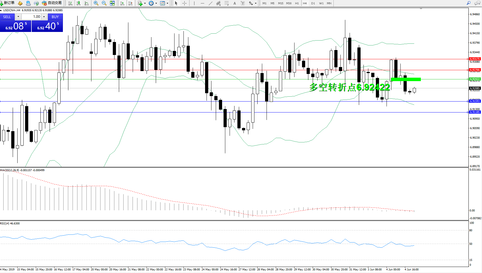 交易策略:6.92422下方看跌,目标6.91593、6.91185