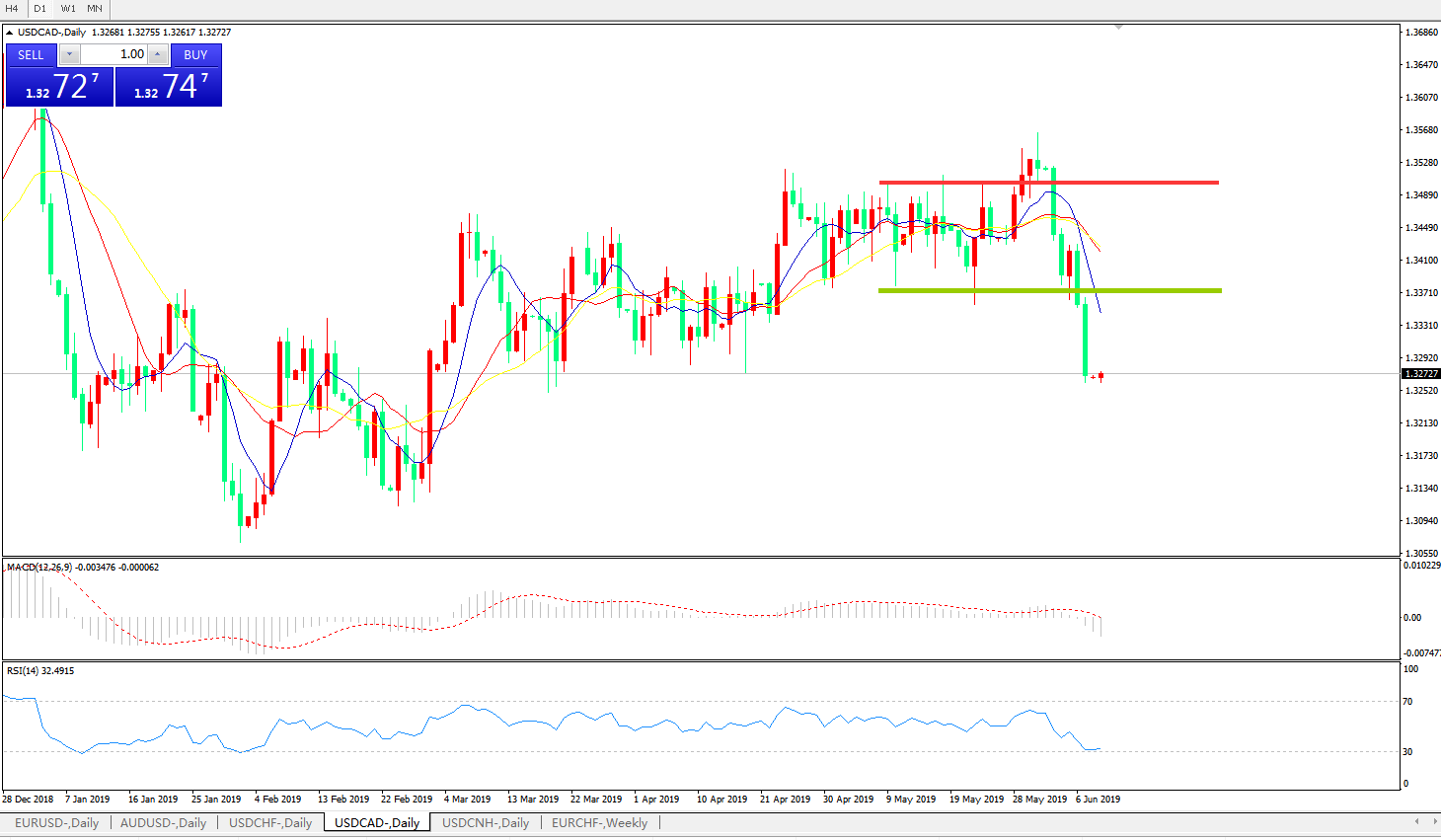 美元兑加元USDCAD    日线