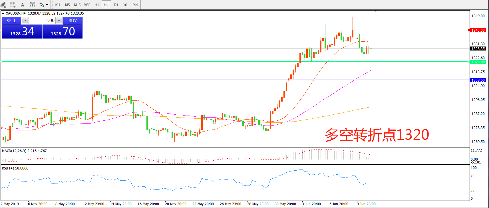 多空转折点:1320.00