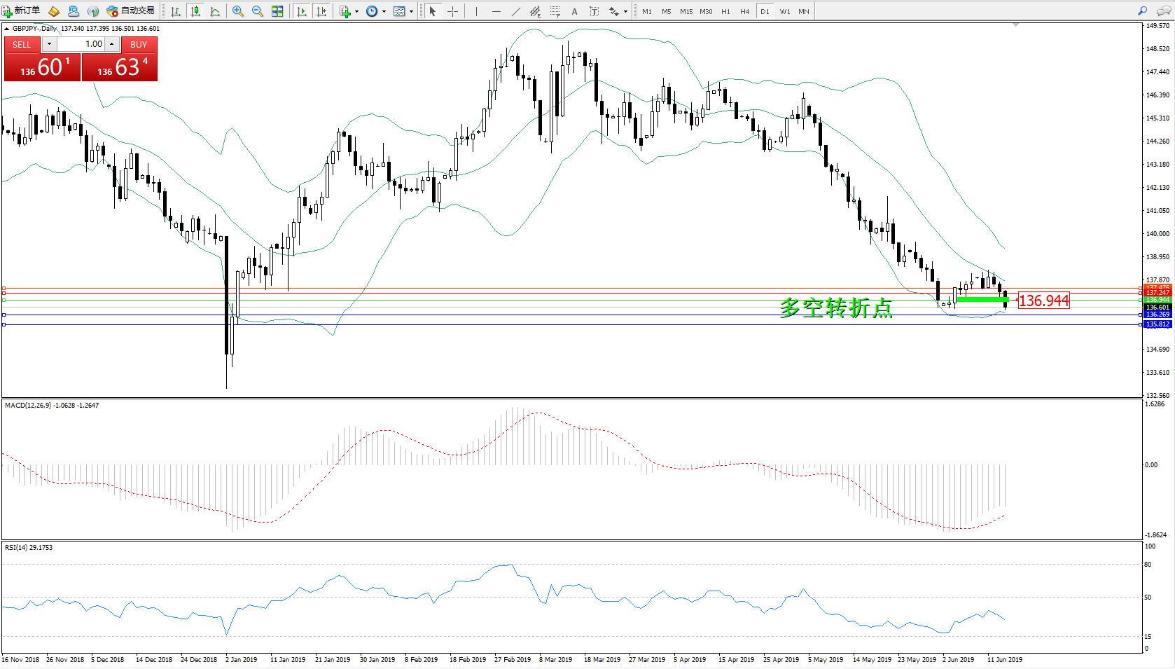 交易策略:136.944下方看跌,目标136.269、135.812