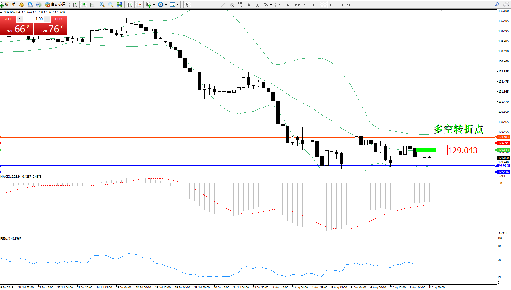 交易策略:129.043下方看跌,目标128.266127.946