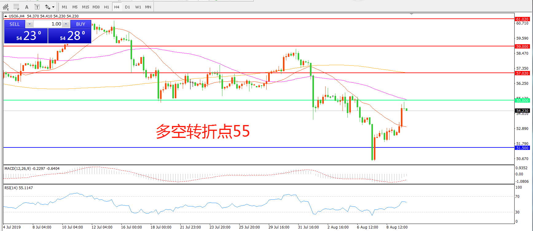 多空转折点:55.00