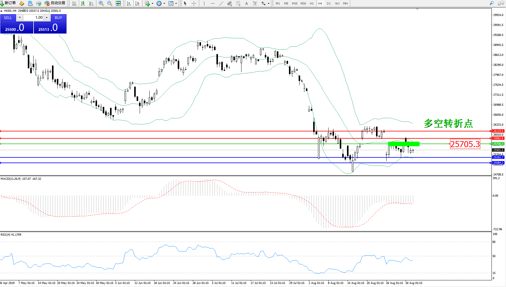 恒指HK50 ——4小时K线图显示: