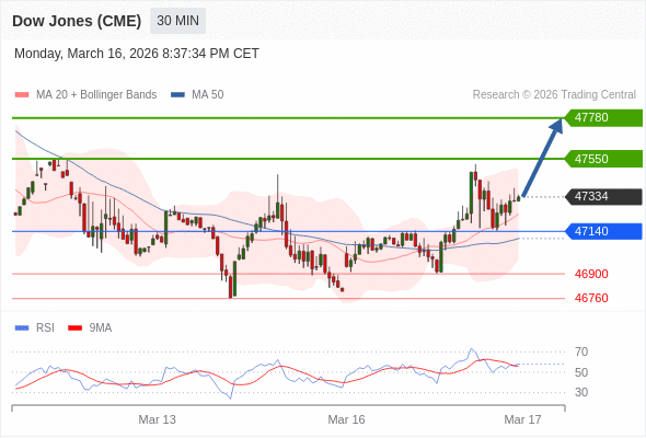 在 47140 之上,看涨,目标价位为 47550 ,然后为 47780 。