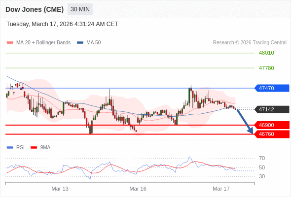 在 47470 之下,看跌,目标价位为 46900 ,然后为 46760 。