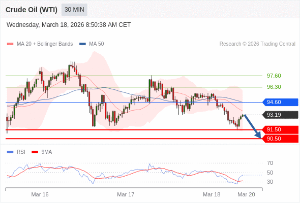 交易策略: 在 94.60 之下,看跌,目标价位为 91.50 ,然后为 90.50 。