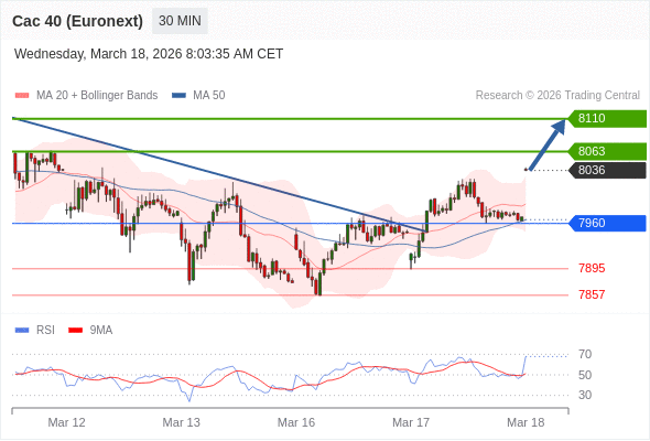 法国CAC指数期货 (Euronext) (H6) 当日内: 目标位为8063。