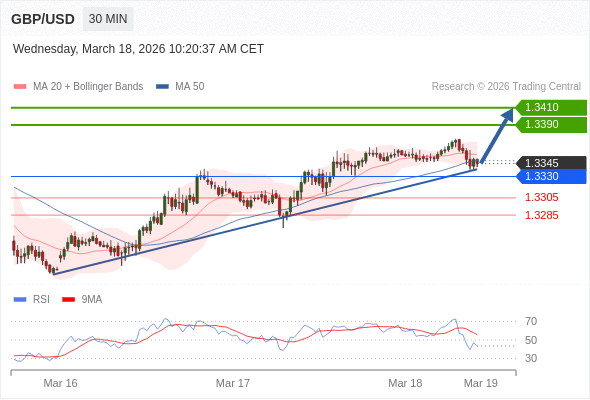 在 1.3330 之上,看涨,目标价位为 1.3390 ,然后为 1.3410 。