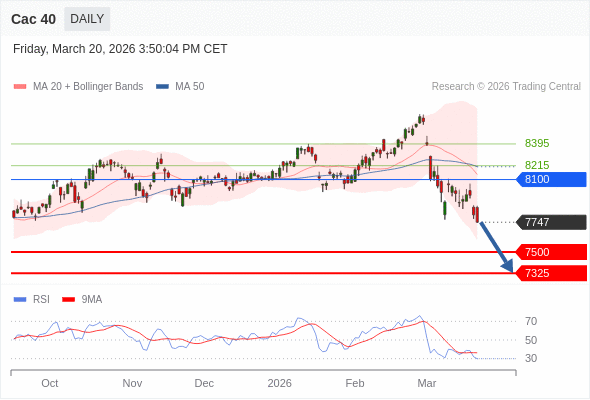 Cac 40 短线: 存在压力。