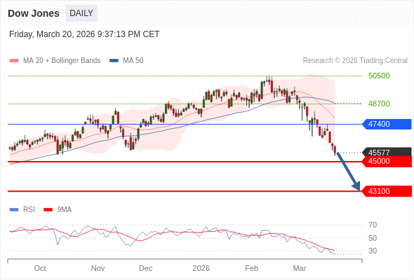 Dow Jones 短线: 存在压力。