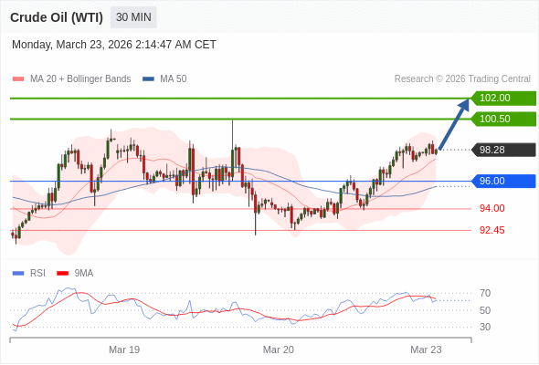 交易策略: 在 96.00 之上,看涨,目标价位为 100.50 ,然后为 102.00 。