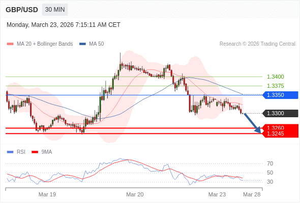 交易策略: 在 1.3350 之下,看跌,目标价位为 1.3260 ,然后为 1.3245 。