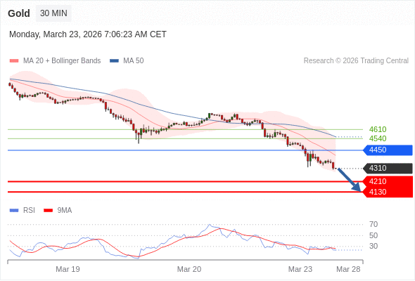 在 4450 之下,看跌,目标价位为 4210 ,然后为 4130 。
