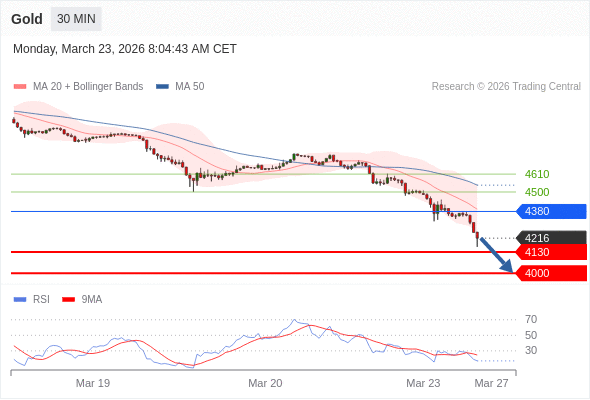 在 4380 之下,看跌,目标价位为 4130 ,然后为 4000 。