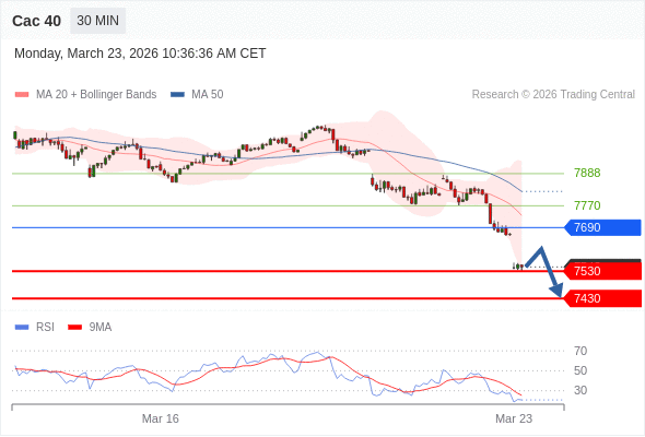 Cac 40 当日内: 期待7530。