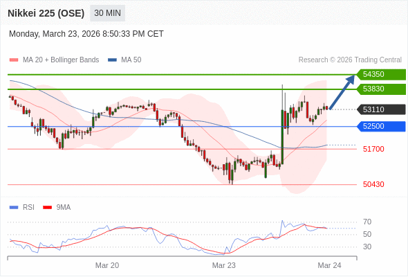 在 52500 之上,看涨,目标价位为 53830 ,然后为 54350 。