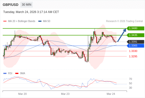 在 1.3365 之上,看涨,目标价位为 1.3435 ,然后为 1.3480 。