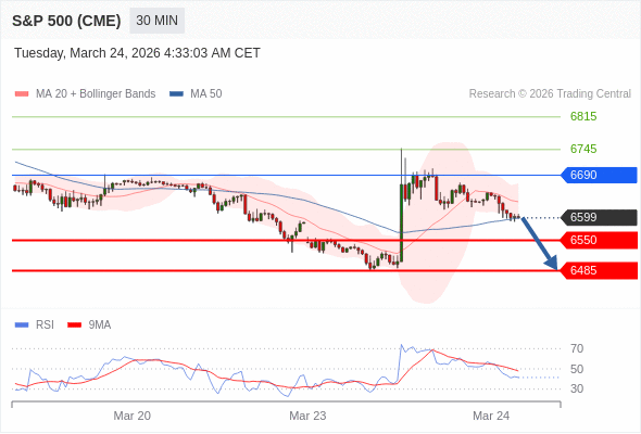 在 6690 之下,看跌,目标价位为 6550 ,然后为 6485 。