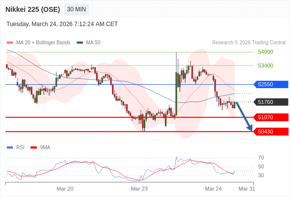 在 52550 之下,看跌,目标价位为 51070 ,然后为 50430 。