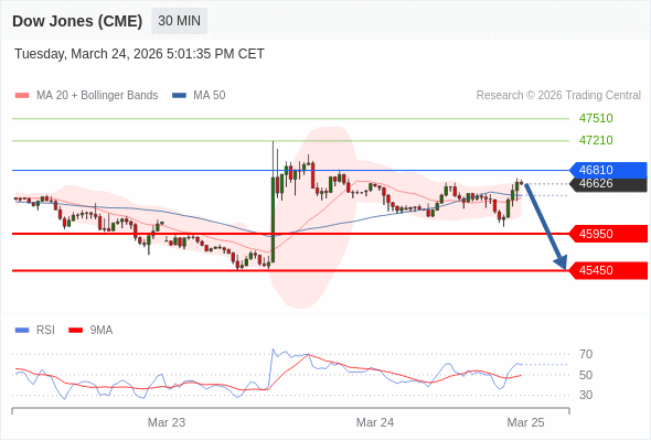 在 46810 之下,看跌,目标价位为 45950 ,然后为 45450 。