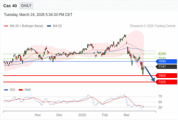 Cac 40 短线: 短期关键阻力位在7890。