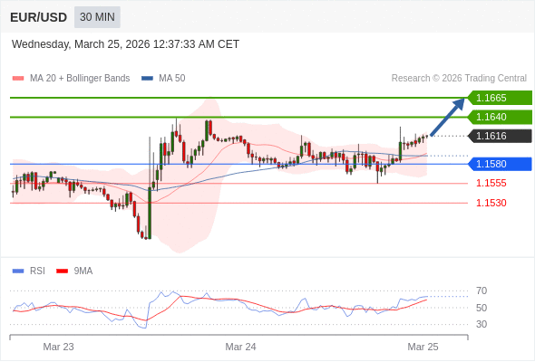 在 1.1580 之上,看涨,目标价位为 1.1640 ,然后为 1.1665 。