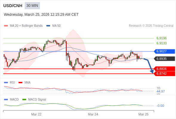 美元/人民币 当日内 : 看跌,在 6.9027 之下。
