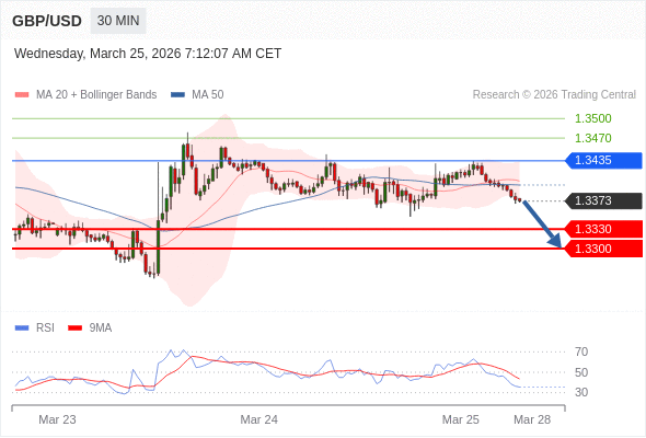 在 1.3435 之下,看跌,目标价位为 1.3330 ,然后为 1.3300 。