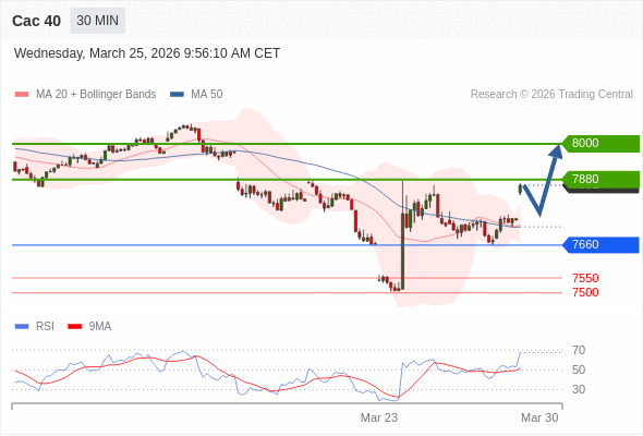 Cac 40 当日内: 期待7880。
