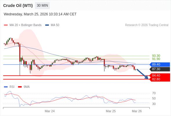 交易策略: 在 89.40 之下,看跌,目标价位为 84.40 ,然后为 82.80 。