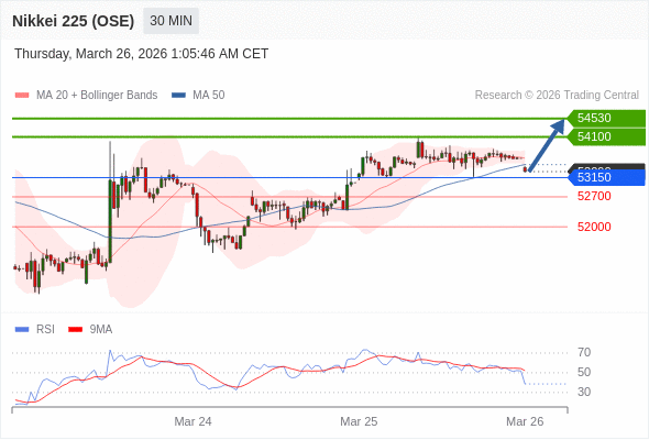 在 53150 之上,看涨,目标价位为 54100 ,然后为 54530 。