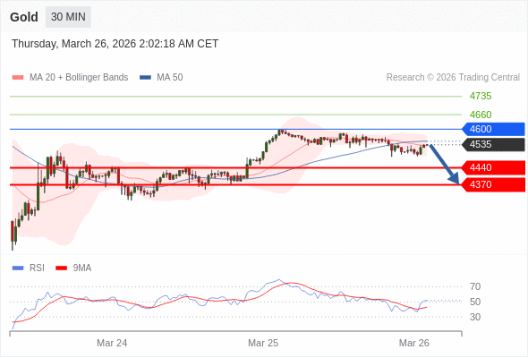在 4600 之下,看跌,目标价位为 4400 ,然后为 4370 。