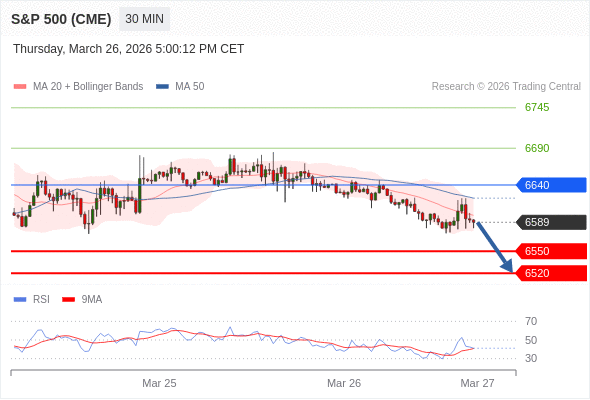 在 6640 之下,看跌,目标价位为 6550 ,然后为 6520 。