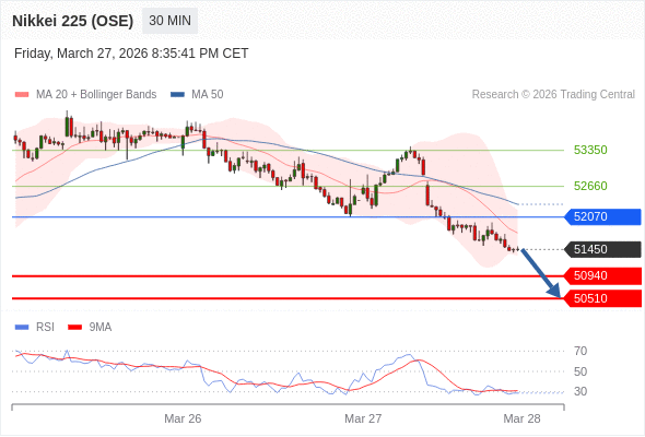 在 52070 之下,看跌,目标价位为 50940 ,然后为 50510 。