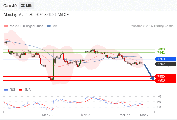 Cac 40 当日内: 存在压力。