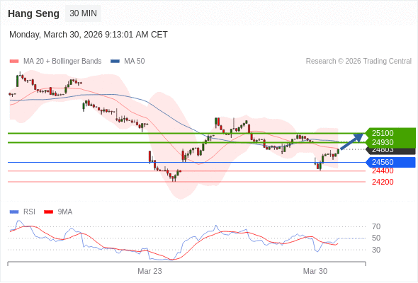 在 24560 之上,看涨,目标价位为 24930 ,然后为 25100 。