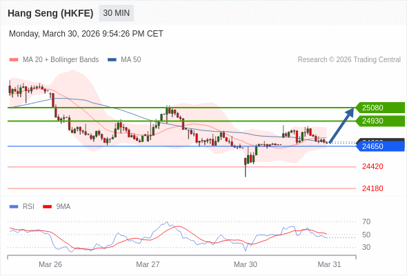 在 24650 之上,看涨,目标价位为 24930 ,然后为 25080 。