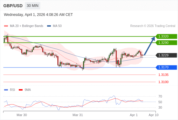 在 1.3170 之上,看涨,目标价位为 1.3290 ,然后为 1.3320 。
