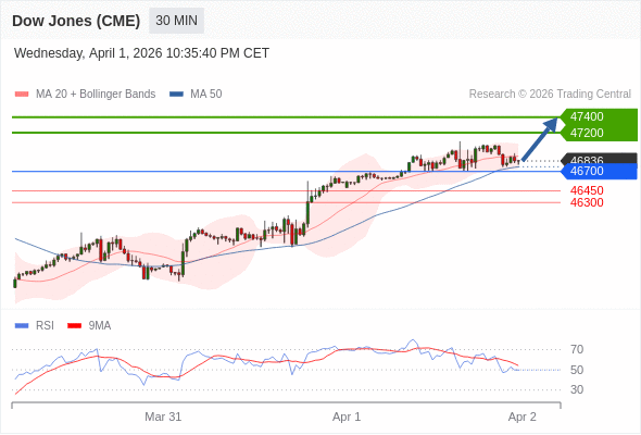 在 46700 之上,看涨,目标价位为 47200 ,然后为 47400 。