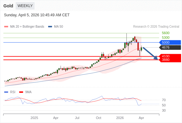 在 5000 之下,看跌,目标价位为 4100 ,然后为 3880 。